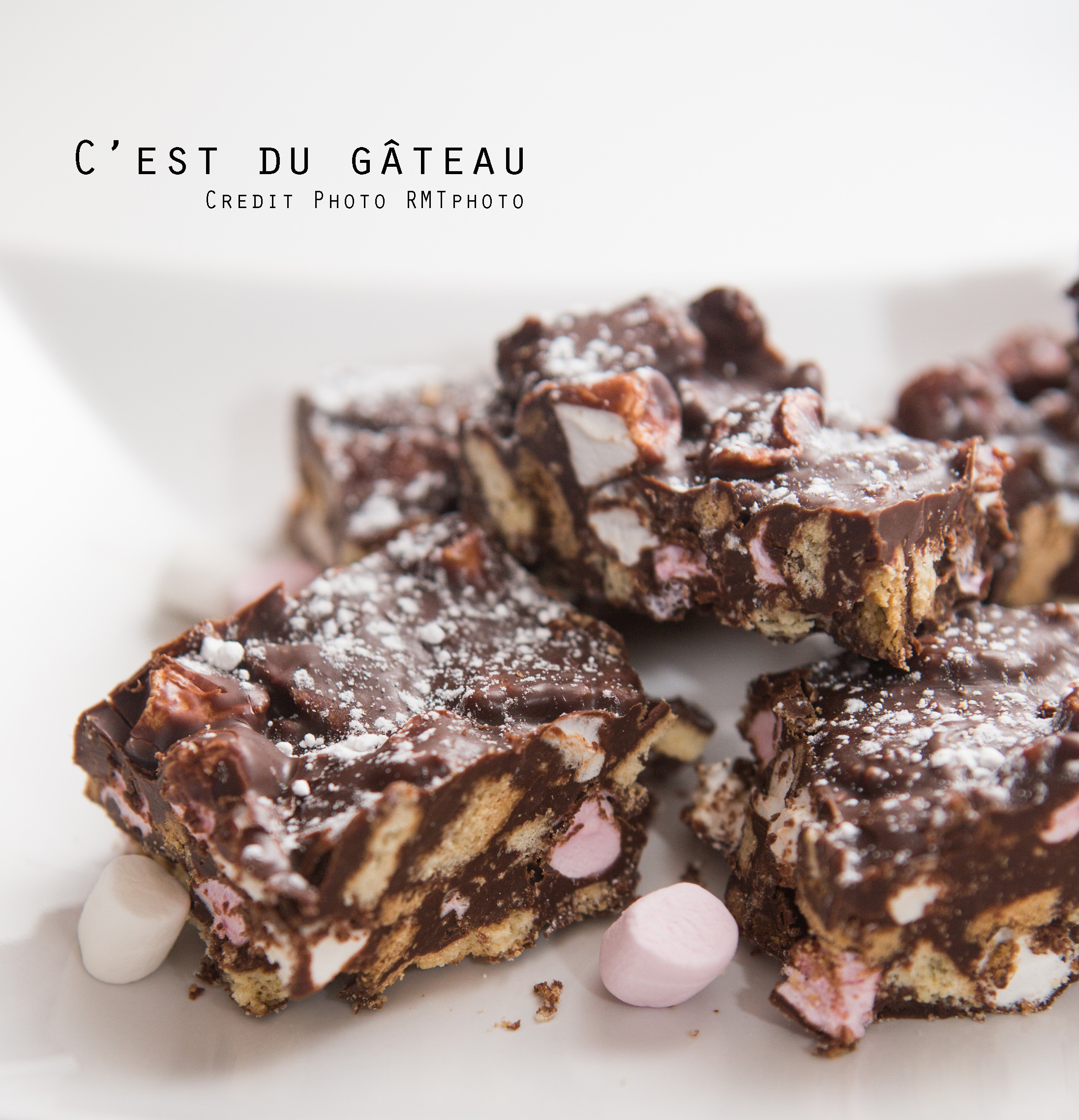 Voici un goûter ultra gourmand et archi simple à préparer ! Une spécialité anglaise dont le nom signifie « route rocheuse ». Il s’agit de bouchées chocolatées à la fois croquantes et fondantes. Le croustillant provient de morceaux de biscuits secs et le moelleux est apporté par des petites guimauves. C’est plutôt calorique, mais c’est très régressif, et une fois de temps en temps, ça ne fait pas de mal ! Et ce qui ne gâche rien, c’est super facile à faire ! Je vous donne la recette ?