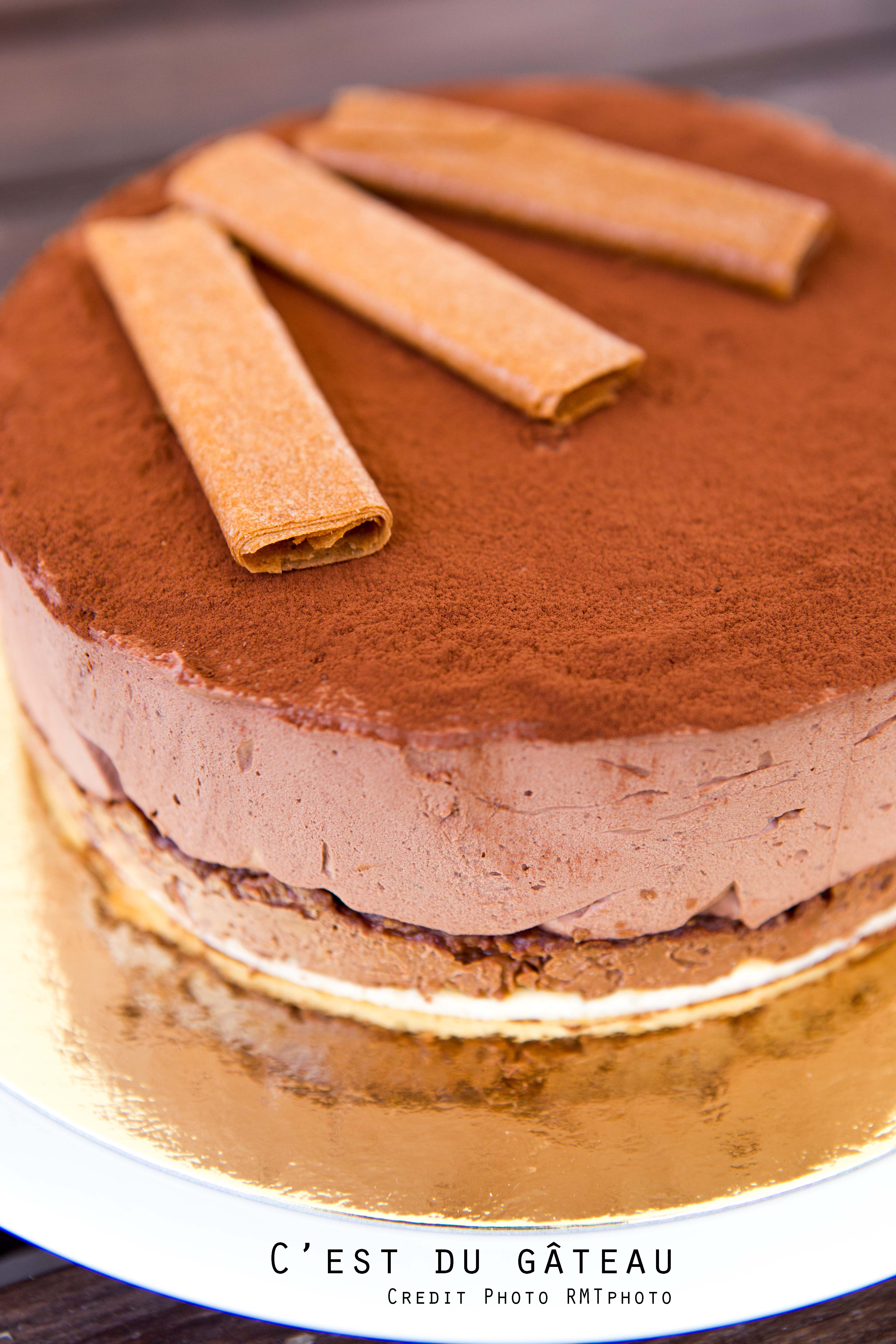 Je viens de faire ce magnifique Trianon, il prend le frais tranquille au frigo … J’ai pris cette recette car la photo de cette énorme mousse au chocolat m’a fait envie, mais envie !
