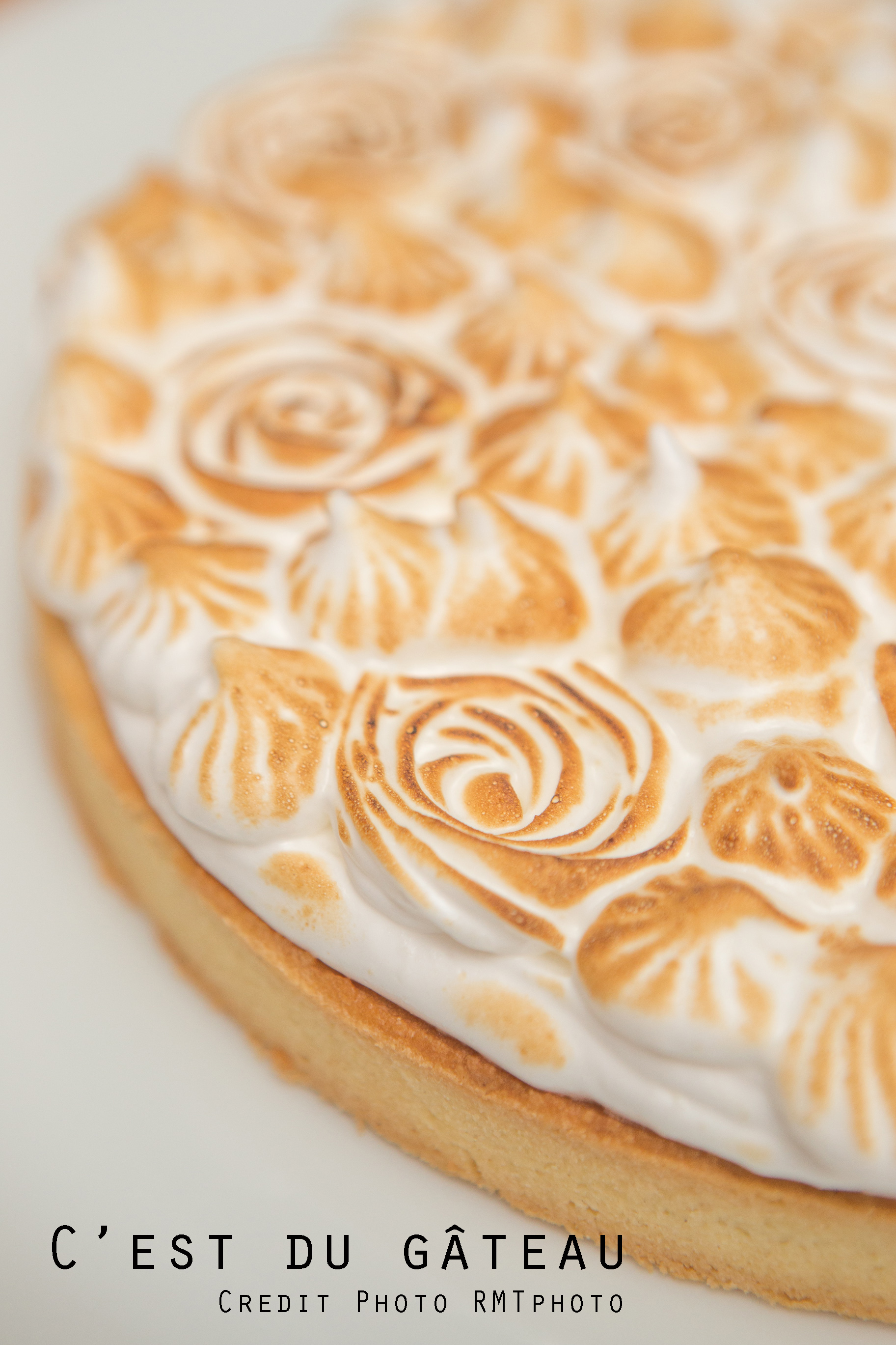 Pochez la meringue sur la tarte, puis brûlez-la au chalumeau.