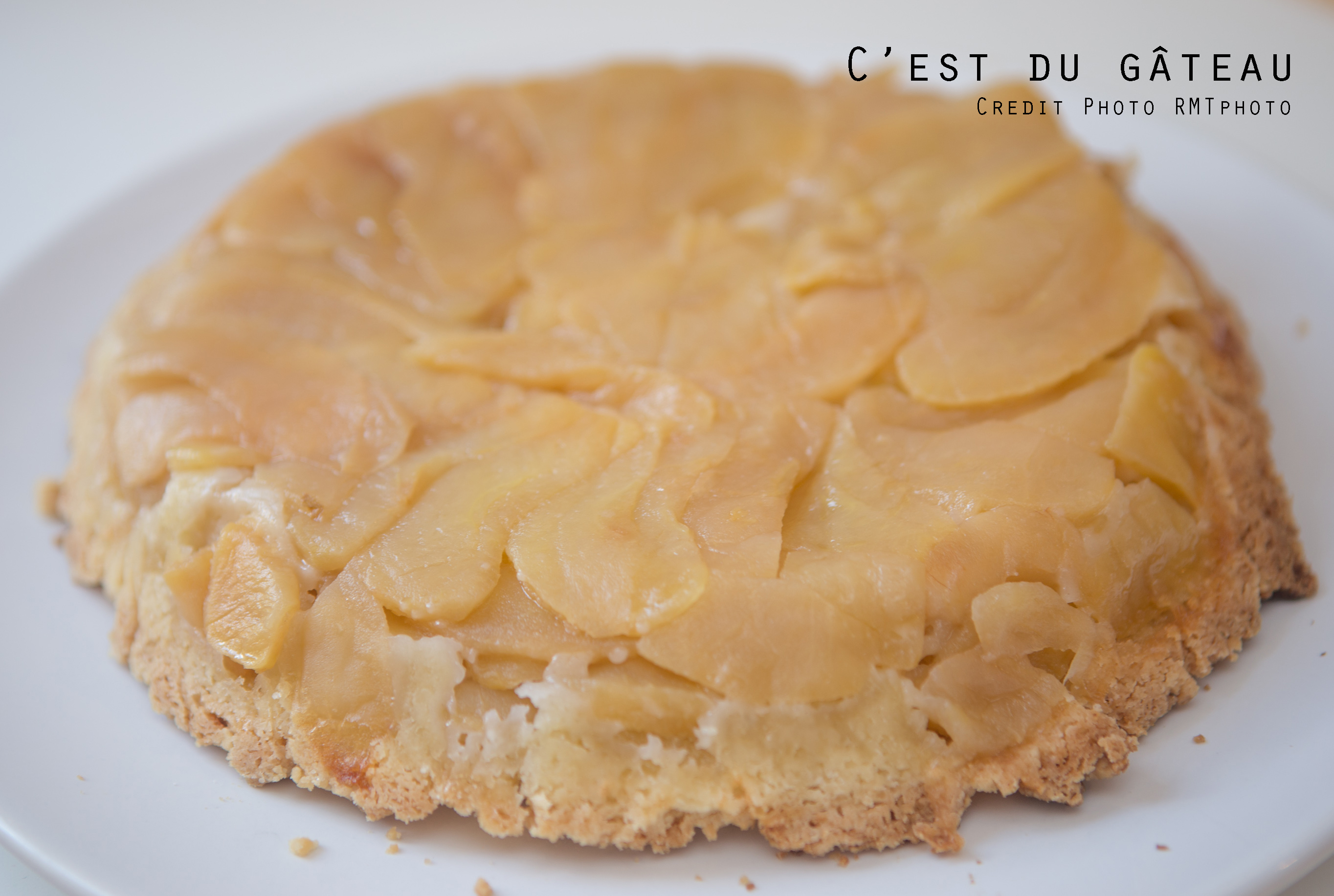 Épluchez les pommes et coupez-les en tranches. Placez les morceaux de pommes dans le moule en essayant de faire une jolie rosace au fond (ce sera la partie visible de votre gâteau). Recoupez les autres tranches en deux et répartissez-les dans le moule. Recouvrez de pâte à crumble sans appuyer. Faites cuire 50 à 60 minutes à 220°C. Démoulez sur le plat de service.