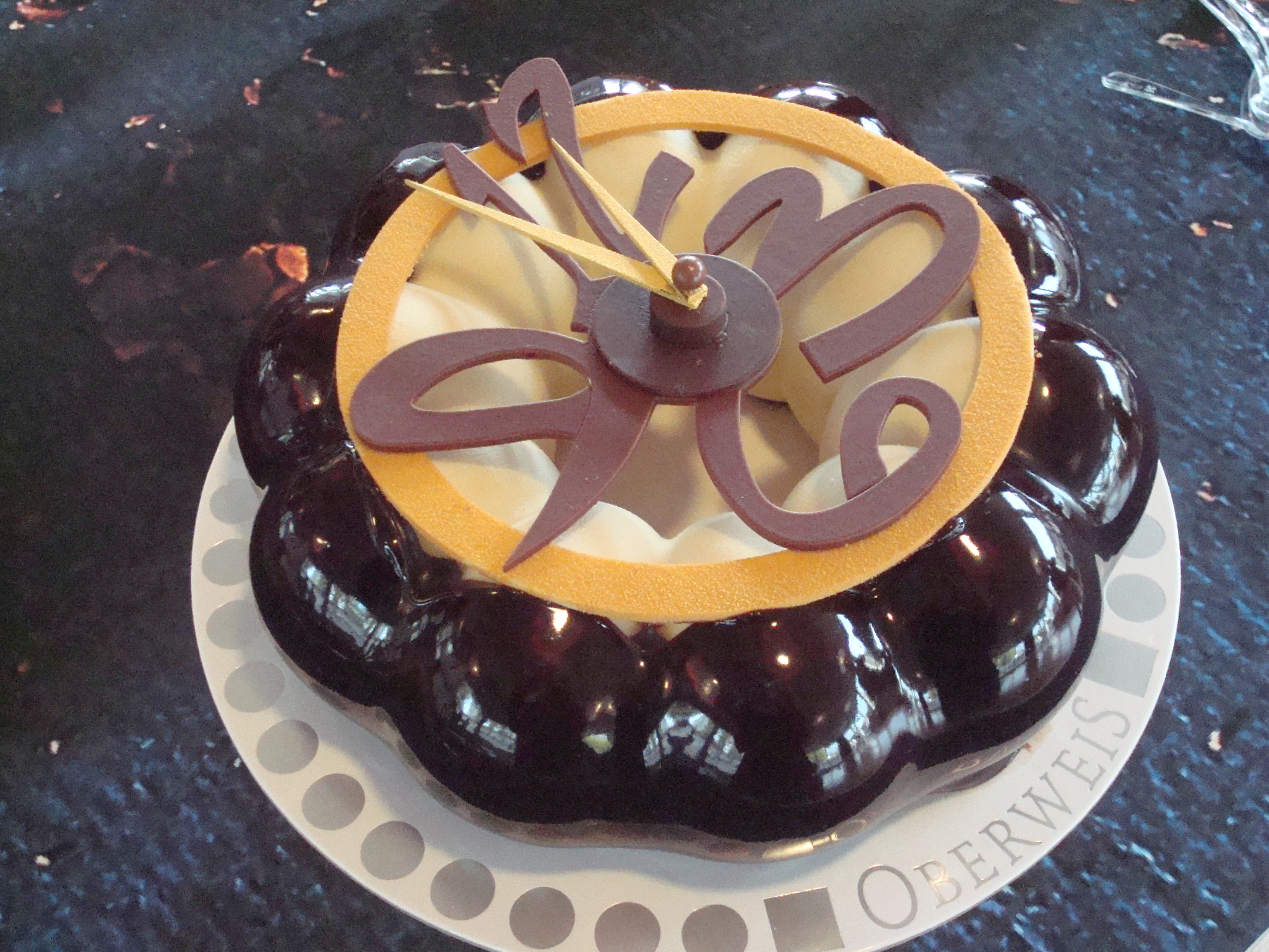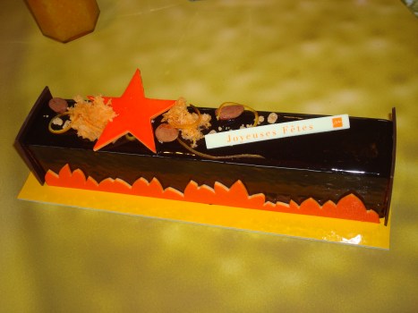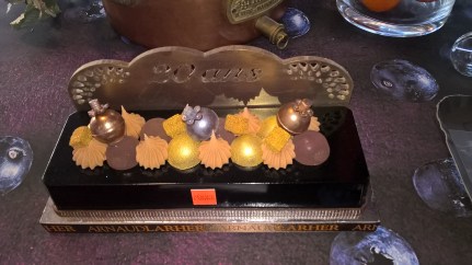 « Saint Sylvestre » de Jeff Oberweiss – Mousse au chocolat noir et croustillant Gianduja, crémeux au chocolat au lait et biscuit chocolat aux amandes.