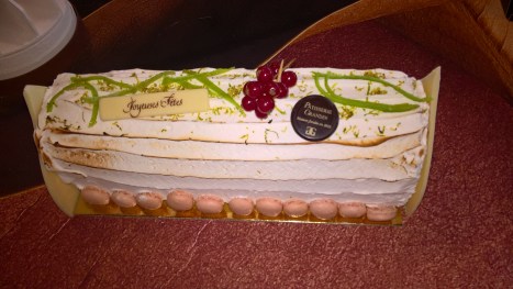 « Royale » de Michel Pottier – Biscuit amande, mousse citron vert, mousse framboise et coulis.